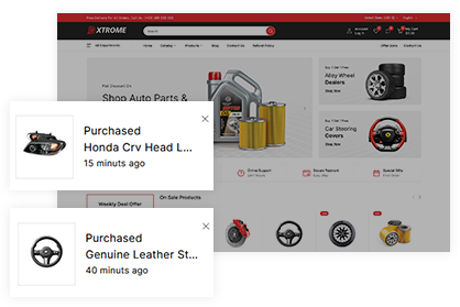 When a consumer makes a purchase on your website, a notification pop-up window is shown to attract additional visitors.