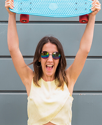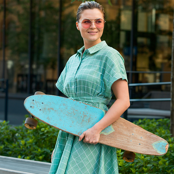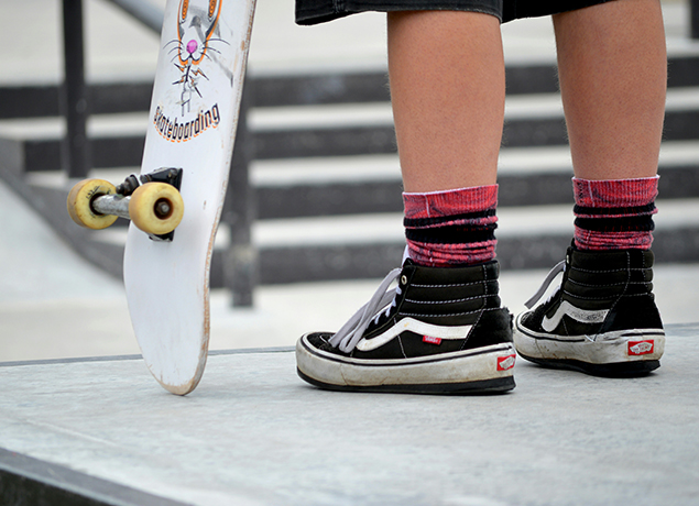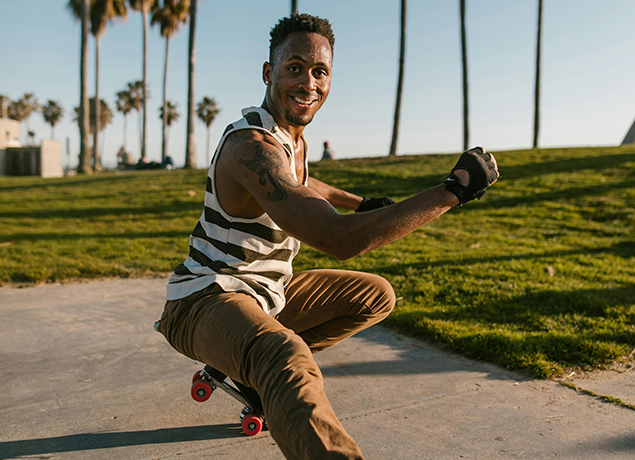 on a skateboard